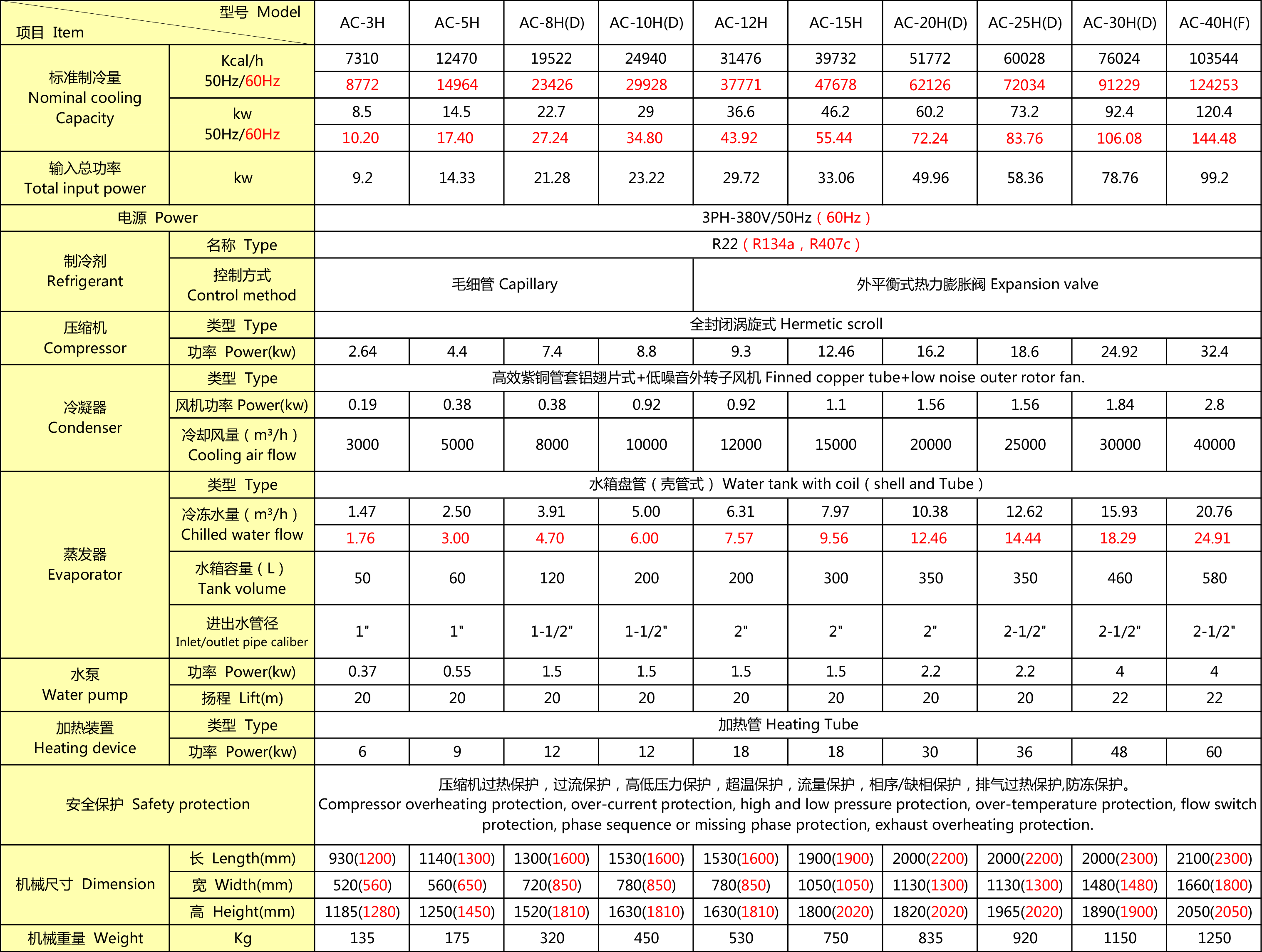 备注:1.制冷量是依据:冷冻水进出水温度17℃/12℃;冷却进出风温度30℃/40℃。
